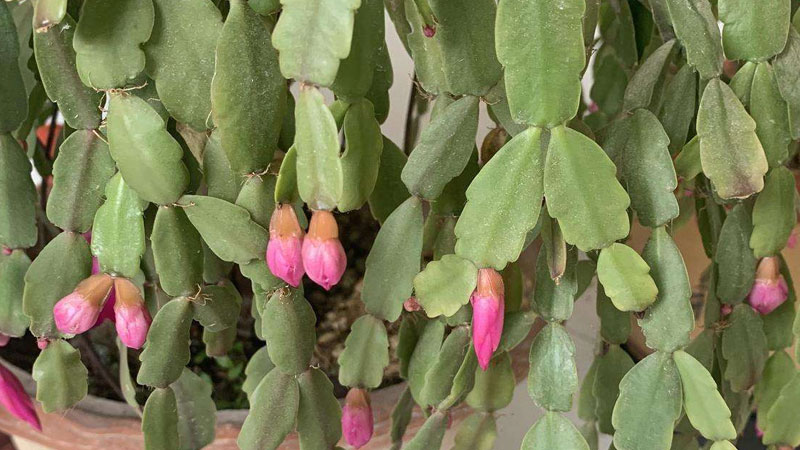 蟹爪兰是一种短日照的花卉,当其进入开花期后,要增加见光时间,可以将植株摆放在光线明亮的地方,确保花苞正常绽放,若长期将蟹爪兰摆放在室内阴暗处,会阻碍叶片进行光合作用,无法积累养分,使得花苞生长不良。