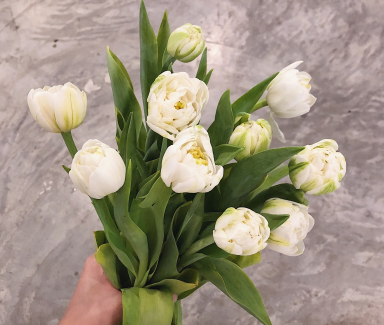 白色郁金香的花语是纯洁清高的恋情,白色的郁金香很适合送给恋人,来表达自己的爱慕之情。