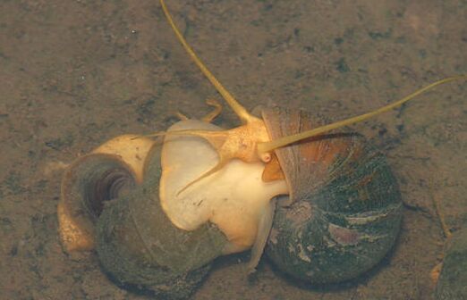 福寿螺,瓶螺科瓶螺属软体动物,外观与田螺极其相似,个体大、食性广、适应性强、生长繁殖快、产量高。1981年引入中国,已被列入中国首批外来入侵物种。 其肉质可食用,但口感不佳,并不为人们喜爱,它还是一些珍贵水产动物的饲料。食用生的或加热不彻底的福寿螺后可能被感染广州管圆线虫等寄生虫,可引起头痛、发热、颈部僵硬等症状,严重者可致痴呆,甚至死亡。