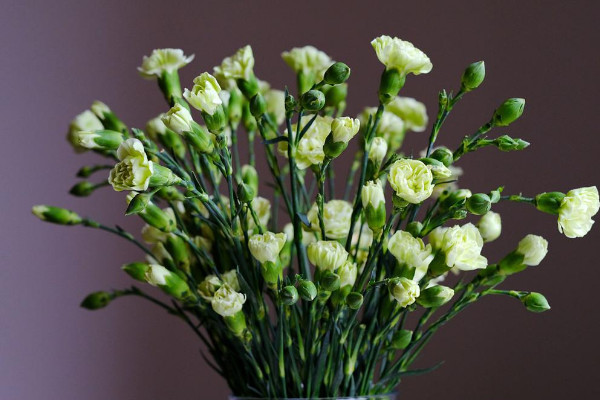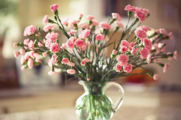 收到的康乃馨鲜花,可以通过水培的方式延长花期,首先将康乃馨花束的外包装拆除,然后清理干净花枝上的残叶残枝,再用剪刀将花枝底部斜切,增大吸水面积,最后将康乃馨插入花瓶中,注入清水后放在半阴处养护。
