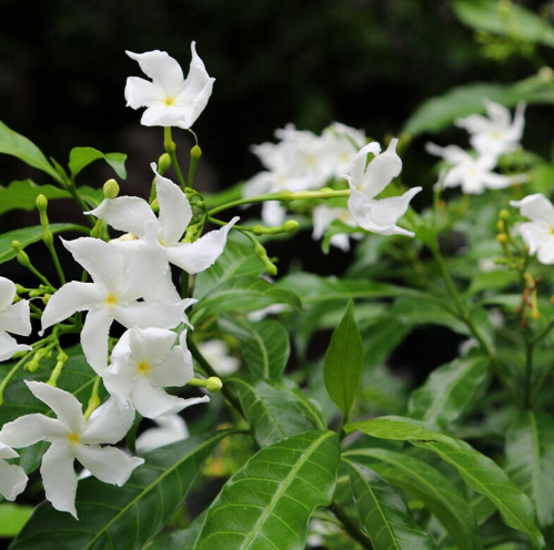 4、氧化作用;茉莉花的花朵本身为白色,一般在刚摘下或是花朵快要凋谢的时候,颜色就会有所变化,通常是由白色变为紫色。降雨过后,无论是土壤还是空气,湿度都是很高的,如果花朵进水了的话,同样会因为氧化而变成紫色。