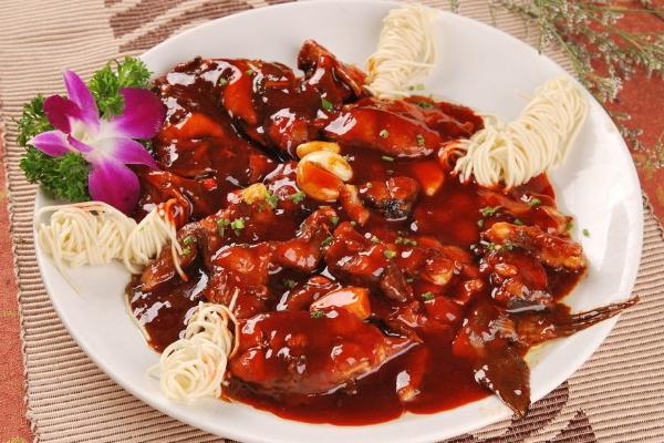 1、先将鮰鱼洗净沥干,斩块,放入八成热的油锅中炸一下捞出沥干油。