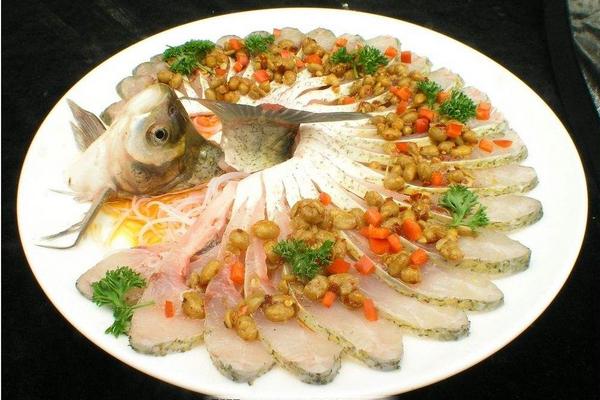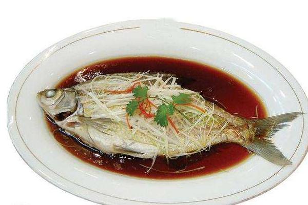 4、冬笋切薄片镶在鱼的两边,加葱结、姜块、料酒。锅置火上,下清水烧沸,将鱼连盘上笼蒸约15分钟,至鱼眼突出、鱼肉已松软时滗出汤汁。炒锅中下鸡汤烧沸,加入鸡油、味精,烧在鱼上面,撒上胡椒粉即成。