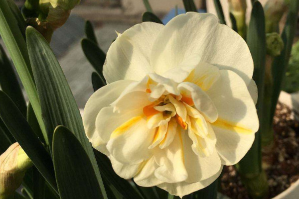 补光处理:将水仙花摆放在光线明亮的地方,保证生长期每天有6小时的光照。 防寒保暖:当水仙花因低温黄叶后,需要将其移到温度在10-15度的室内。 换盆修根:修剪腐烂、干枯的根系后,重新栽种到松软肥沃的新盆土内。