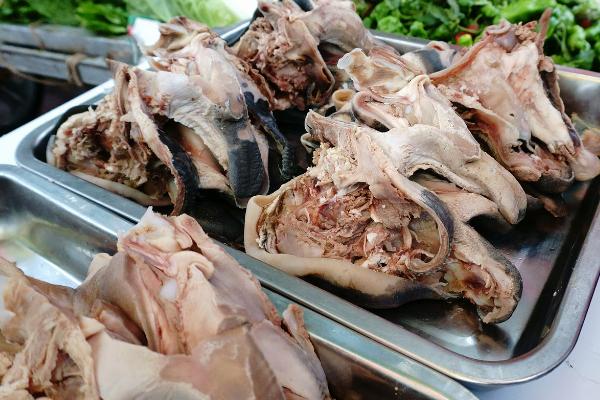 羊头是一道美食,尤其是在回族,羊头、羊蹄、羊杂碎是很美味的小吃。如果饲养羊的环境不是非常固定,羊有可能会因为吃到一些食物而长寄生虫,在当地羊头有虫子称为脑包虫。如果羊头出现这种情况,说明羊头不干净卫生,存在食品隐患,因此这样的羊头肉就要慎吃了。