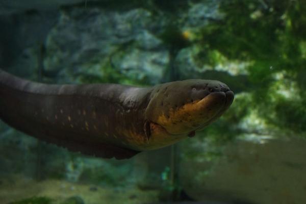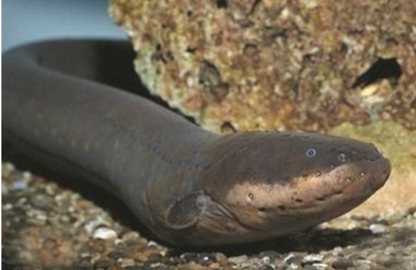 电鳗行动迟缓,多栖息在缓流的淡水水体中,还会不时上浮水面,吞入空气,进行呼吸。