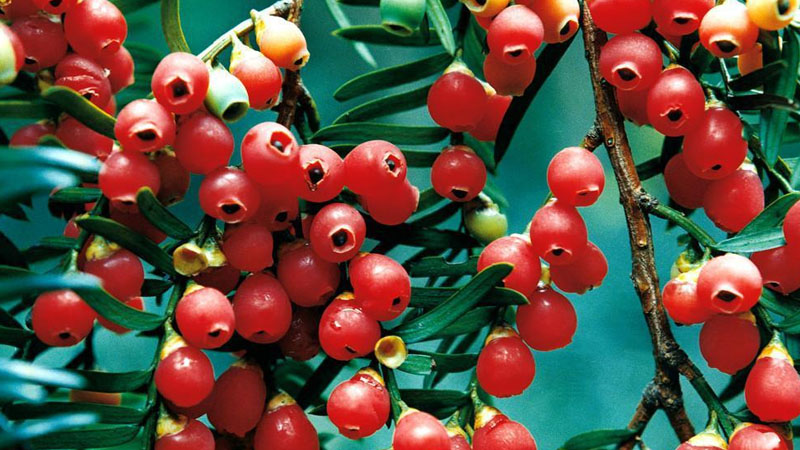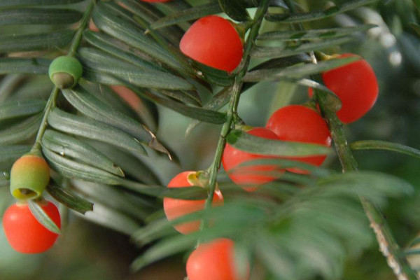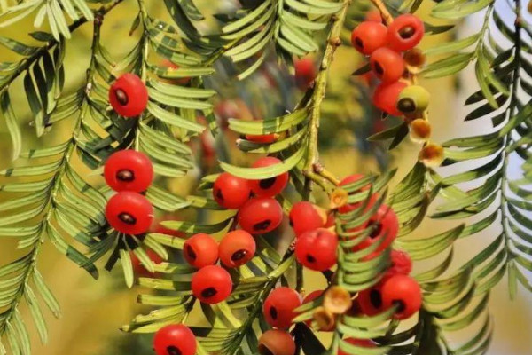 红豆杉开花时,花朵单生于叶腋,雌雄异株,其中雄花呈现圆球形,花梗短小,基部被苞片包裹,而雌花没有花梗,苞片对生排列,而且花朵成功受精后,就会长出红色的假种皮,养殖红豆杉时,要为其提供散射光照,并定期施加复合肥。