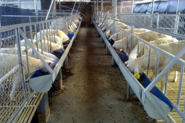 一、羊舍建造:羊舍可建成单坡敞棚式或全封闭式。单坡敞棚式一般后墙高度为1.8米,棚顶倾斜度为15度。全封闭式墙高2.32.5米,门宽1.52米。羊舍地面高出舍外地面2030厘米,铺成斜坡以利排水。一般成年羊每只约占1.52平方米,怀孕母羊、哺乳羊、种公羊所占面积稍大些。舍内要保持干燥、通风,尽量做到冬暖夏凉,舍外设运动场,面积约为羊舍面积的2倍。