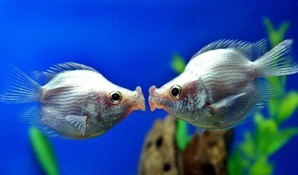 2、接吻鱼有一个大大的厚嘴唇,两只接吻鱼在一起接吻是同性之间在争抢自己的领域空间,它们经常一下午动都不动,但它们亲吻这么久是因为没有分出胜负,只要有一方退让就会和解,赢的一方并不会追击,因此没有伤亡情况,也不会造成其他生物的威胁。