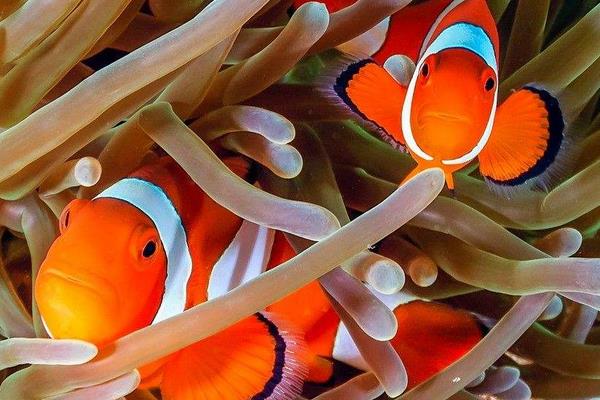 2、小丑鱼是雀鲷科海葵鱼亚科鱼类的俗称,已知有28种,一种来自棘颊雀鲷属,其他的来自双锯鱼属,原生于印度洋和太平洋较温暖的水中,包括大堡礁和红海,栖息在珊瑚礁和岩礁中,在幼鱼时期经常和大的海葵、海胆及小的珊瑚顶部共生。