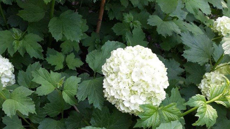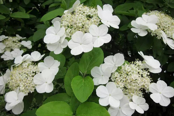 绣球荚蒾是绣球花中的一类品种,株高在4米左右,茎干为灰褐色,幼枝上分布有短毛,且绣球荚蒾在春季开花,花色为白色,花型较大,养殖绣球荚蒾时,要为其喷洒硫酸亚铁稀释溶液,避免出现黄叶现象。