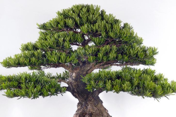 罗汉松在修剪造型时,需要由下至上进行修剪,使枝叶分布更加均匀,并富有层次感,一般将两条相近的平行枝,剪除长势较弱的一根,以提高罗汉松树枝间的透光性,促使叶片充分进行光合作用,有利于植株生长繁茂。