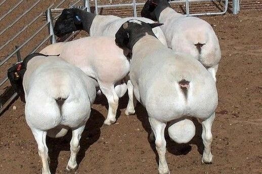 杜泊绵羊,原产地在南非,有角陶赛特羊和波斯黑头羊杂交育成,最初在南非较干旱的地区进行繁殖和饲养,因其适应性强、早期生长发育快、胴体质量好而闻名。杜泊羊分为白头和黑头两种。杜泊绵羊主要用于羊肉生产,它能十分有效地满足羊肉生产各方面的要求。