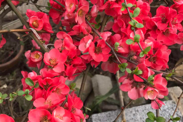 贴梗海棠的生长速度快,在养护期间,要定期用消过毒的剪刀修剪生长杂乱、密集、病弱等枝条,减少养分消耗,提高枝叶间的通风透气性,并降低病虫侵害的可能性,另外每隔1-2年为贴梗海棠更换一次松软肥沃的土壤。