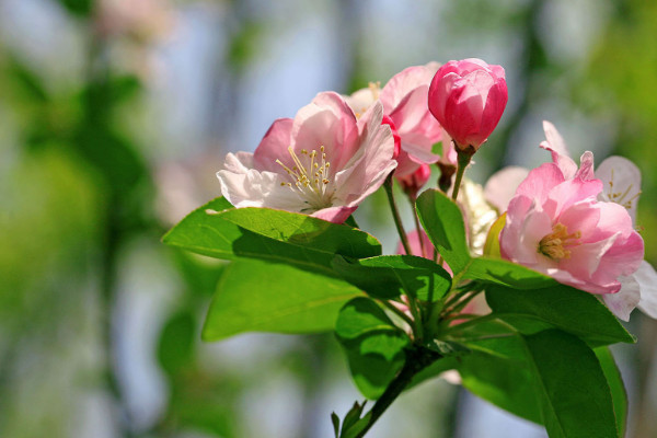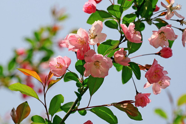 海棠花生长期间对水分有一定的需求,每隔5-7天就要浇水一次,夏季高温干燥,水分蒸发速度快,每隔2天向枝叶喷洒水雾,每个月浇灌稀释的有机肥液,提供充足的营养。