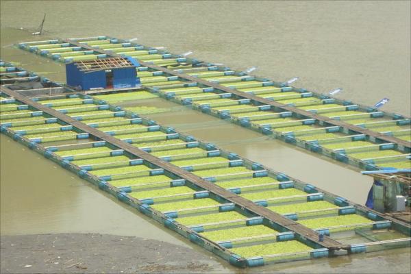 2、投浮萍:早期鱼苗投入鱼池后,每天早上7点钟至8点投入七仙浮萍,下午4点钟之前补充投入含30%蛋白的鱼饲料,使用浮料能观察鱼的生长速度和生长情况。中期、后期养殖的鱼每天早7-8点钟和下午4点钟之前投杂交红底浮萍、杂交七层浮萍,确保鱼能喂饱,但不能多吃。