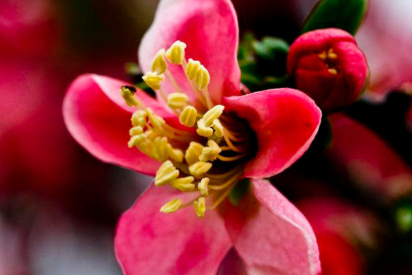 海棠花约有十七个种类,总共有上千个品种,其中比较常见的有西府海棠、贴梗海棠、垂丝海棠、湖北海棠、木瓜海棠等,其中西府海棠是绿化工程中比较受欢迎的品种,而贴梗海棠是蔷薇科木瓜属的海棠花。