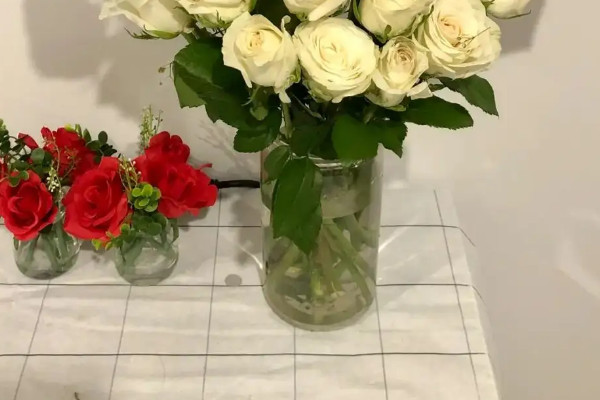将修剪过后的玫瑰花枝条插入花瓶中,并添加营养液,起到延长保鲜期的作用,也可以使用稀释后的啤酒溶液,或者少许酒精、白砂糖等,确保植株能正常生长。