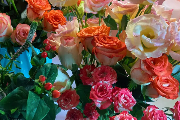 修剪处理:将玫瑰花枝干基部周围枝叶剪除,根部削成细长斜形。 准备容器:选择透明玻璃花瓶作为水养容器。 插枝入瓶:将修剪过的玫瑰花枝条插入瓶中。 养护管理:把玫瑰花摆放在室内温暖、通风条件好的位置。