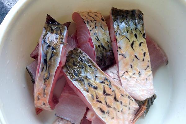 1、草鱼洗净,剖去内脏,挖去鱼鳞。