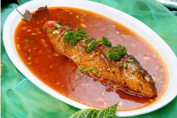 8、最后水淀粉勾芡。将汤汁淋在炸好的鱼上即可。