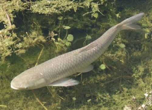 草鱼属鲤形目鲤科雅罗鱼亚科草鱼属。草鱼的俗称有:鲩、鲩鱼、油鲩、草鲩、白鲩、草鱼、草根(东北)、厚子鱼(鲁南)、海鲩(南方)、混子、黑青鱼等。栖息于平原地区的江河湖泊,一般喜居于水的中下层和近岸多水草区域。性活泼,游泳迅速,常成群觅食。为典型的草食性鱼类。草鱼幼鱼期则食幼虫,藻类等,草鱼也吃一些荤食,如蚯蚓,蜻蜓等。在干流或湖泊的深水处越冬。生殖季节亲鱼有溯游习性。已移殖到亚、欧、美、非各洲的许多国家。因其生长迅速,饲料来源广,是中国淡水养殖的四大家鱼之一。
