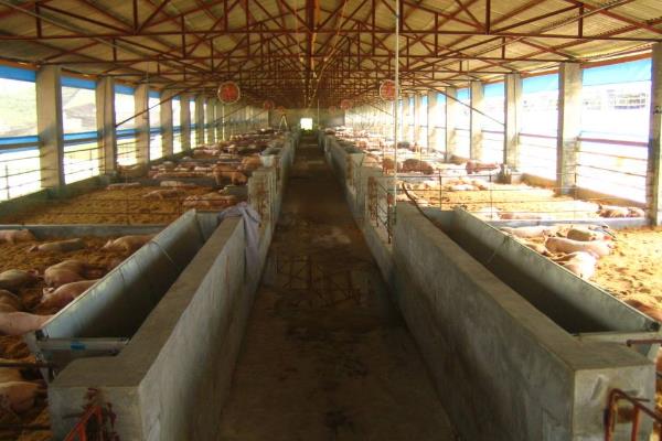 1、猪舍的建设要东西走向,坐北朝南,能充分采光,通风良好,南北可以敞开,地形高且干燥,地面渗水能力强,无污染,离公路100m,有清洁的水源,有供电系统,住房处下风,偏风方向,朝南面的半坡全部作为采光面,阳光直接照射整个猪舍,冬至日也可照射到后墙。
