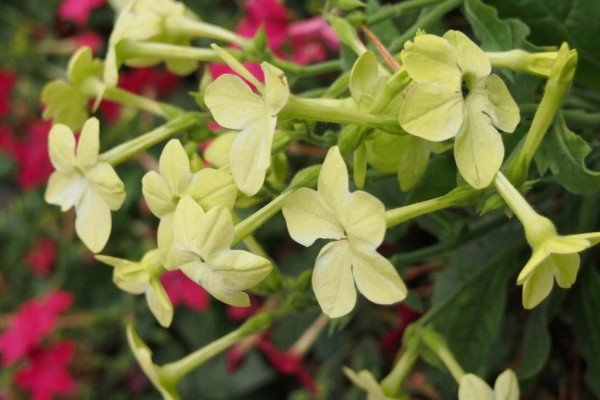 花烟草是多年生的茄科草本植物,全株高达1.5米,枝干上有细小的粘毛,花烟草的花期较长,通常能够从4月份一直持续到10月份左右,并且植株的花色繁多,常见的有白色、紫红色、黄色等。