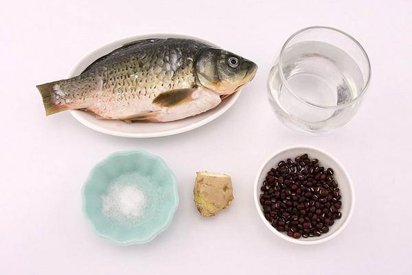 原料:红豆150克、鲫鱼300克、姜一块、料酒15克、盐5克。