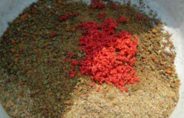 4、配方四:菜子饼一份,蚕蛹粉一份,鲤哥(老鬼公司的)一份,再加少许面粉或者拉丝粉,拌在一起,钓鱼的时候就用发酵好的水来和就行。