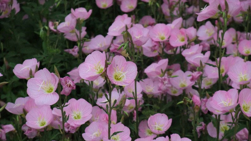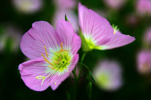 月见草是一种一年生或二年生的草本植物,植株的花茎高度在50-200厘米的范围之间,基部生长的莲座叶片紧贴底面,叶片呈现倒披针状,长度在10-25厘米左右,宽度在2.5-5厘米之间。