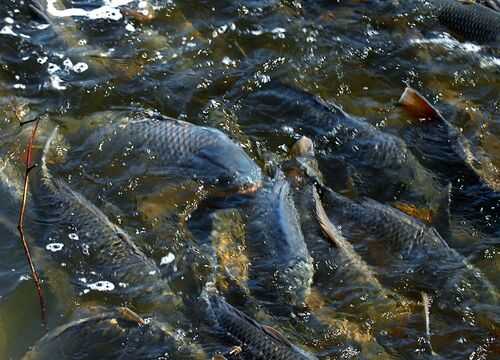 鲤鱼俗称鲤拐子、毛子等,隶属于鲤科。身体侧扁而腹部圆,口呈马蹄形,须2对。背鳍基部较长,背鳍和臀鳍均有一根粗壮带锯齿的硬棘。体侧金黄色,尾鳍下叶橙红色。鲤鱼平时多栖息于江河、湖泊、水库、池沼的水草丛生的水体底层,以食底栖动物为主。