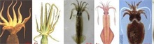章鱼 俗称 八带:有八条细长的爪子,爪子上有很多很强的吸盘,肚子是圆的,能喷墨汁,一般食物是贝壳类