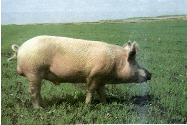 2、苏白猪:是前苏联改良的品种,具有较强的适应能力,一般8月龄的猪可以长到200多斤。