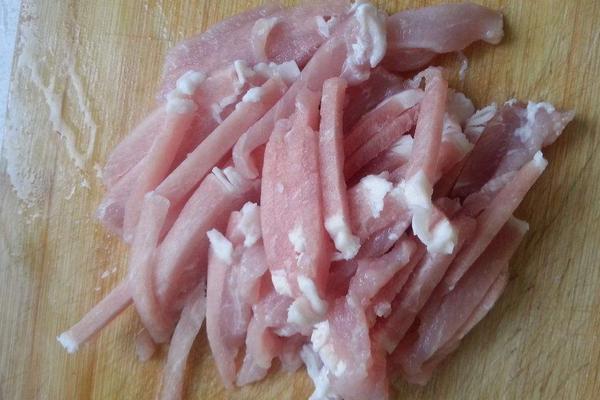 2、加入食用油拌匀:在切好的猪肉丝中加一勺食用油,拌匀后放几分钟再炒,猪肉的肉质会很嫩。