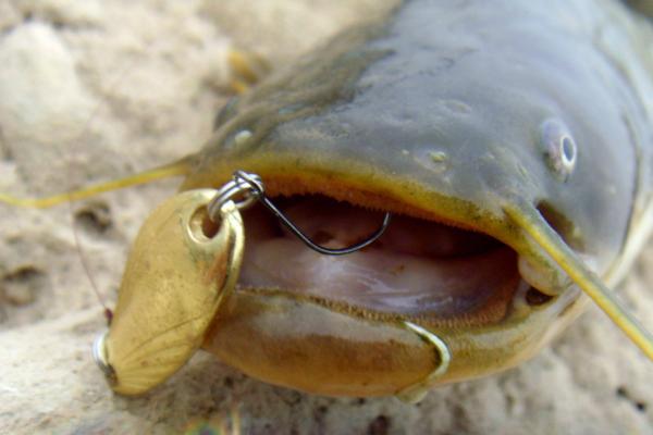 5、钓钩应选用歪把钩,这种钩的钩柄较长,可避免鲶鱼用利齿磨断钓线。