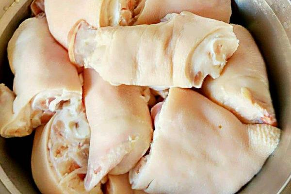 2、猪蹄毛多第一个程序是直接放到开水里边浸泡,俗话说的死猪不怕开水烫就是这个道理,烫几秒钟就拿出来否则烫的半生不熟容易变质而且表皮容易破开影响美观。
