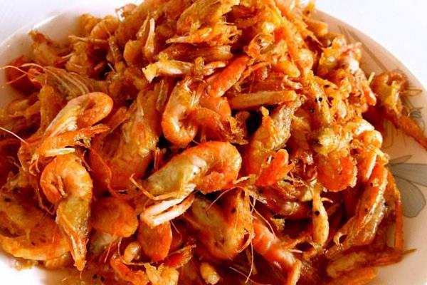1、将新鲜的小河虾洗净、擦干备用。净锅入宽油,八成油温,将小河虾炸至皮红、酥脆。捞出沥干油分