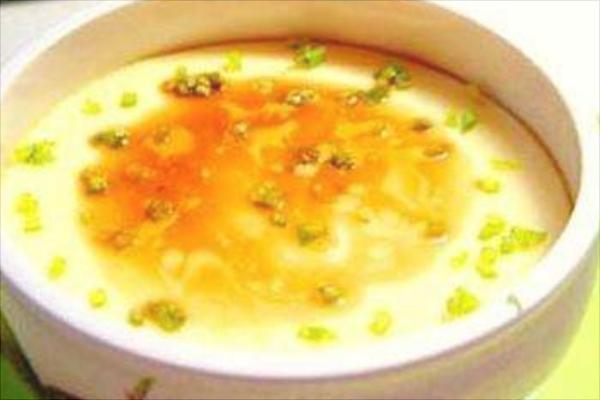 6、把打好蛋液的四分之一甩入鸡汤内,煮熟后加适量食盐即成。