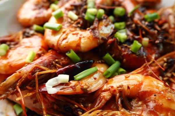 ,6、下糖和盐调味,大火收汁,临出锅沿边烹入醋即可。下锅翻炒的步骤进行一定要快,才能让虾肉锁住鲜嫩,不会变老。