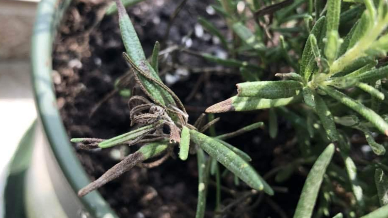 迷迭香适合生长在通风性好的环境中,环境过于闷热就会导致植株生长不良,出现枯萎的现象,此时要将迷迭香枯萎的部位剪除,然后将植株放在通风良好的环境中,等待其恢复健康生长。