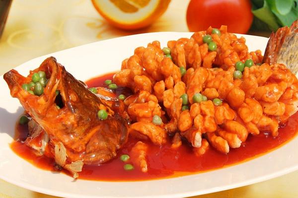 食材:鳜鱼、香菇、猪油、麻油、虾仁、豌豆、干淀粉、酒、蒜瓣末、笋丁、盐、鲜汤、番茄酱、糖、香醋