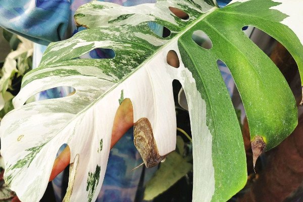 白锦龟背竹可以借助药物培育出来。首先选择一株长势良好的龟背竹,向其叶片注射一种药物,使叶细胞出现变异,失去产生叶绿素的功能,从而叶片的绿色就会褪去,出现白色的斑点或者斑块,呈现出出锦的效果。