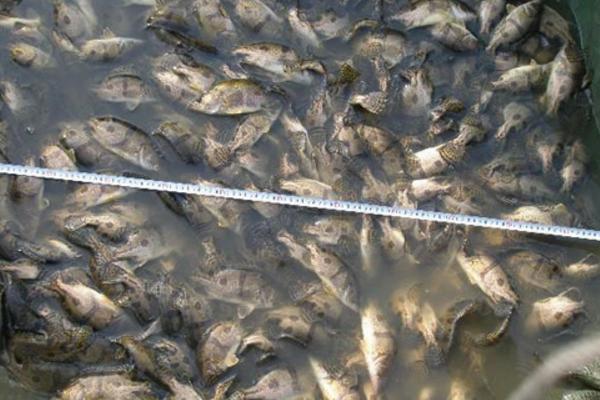 目前江浙、广东地区的鳜鱼养殖方法多采用池塘单养的方式,一些养殖户为了提高经济效益,往往采取高密度养殖,使饵料鱼的密度增加、养殖池塘符合负荷增大、代谢产物增多、氨氮等大量有害物质积累,导致池塘水质环境恶化,危害鳜鱼的健康。一般3cm左右的鳜鱼放养密度在1.5-2025万尾/hm2,放养密度过大会加大鳜鱼病毒病的患病几率。