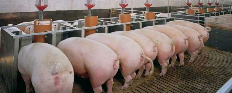 现在养猪场在培育、生长、育肥猪群的过程中多采用自动食槽,让猪自行自由采食。即在食槽顶部装饲料储存箱,每间隔一段时间加一次料,可以减少饲喂工作量,提高劳动生产率;且可以根据猪生长的不同阶段、定时定量饲喂,能在一定程度上节省饲料,可有效的避免猪群产生应激反应。