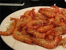 2,锅里放水烧开, 放姜, 葱, 适量盐, 少量白酒, 水煮沸时放入虾, 烧至虾壳变红关火, 捞出沥干水份摆盘
