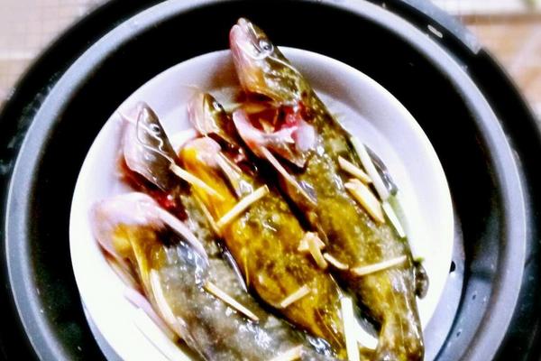 2、接下来关于鱼的处理方法就有两种,可以根据自己的喜好选择:一种是先在锅里加适量水煮沸,转到最小火,将黄骨鱼入锅,用沸水慢慢浸熟这点同烹饪白切鸡的方法一样,我觉得这样黄骨鱼的鲜味容易散去,改用另一种方法,清蒸,将鱼装入碟中,撒几片姜丝,少许米酒,待蒸锅内水烧沸后,入锅蒸约6-8分钟