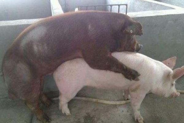 2、公猪催情:将不发情的母猪与公猪圈在一起,让公猪追逐,爬跨来促进母猪发情。