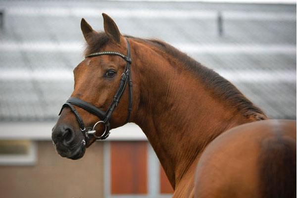 2、头,中等大小的头,挺直或有一点凸起的侧面,表现着沉着的天性与气质,有的会有多一点纯血马的长相。