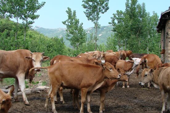 黄牛是中国固有的普通牛种。角短,皮毛黄褐色或黑色,也有杂色的,毛短。用来耕地或拉车,肉供食用,皮可以制革。其在中国的饲养头数在大家畜中或牛类中均居首位,饲养地区几乎遍布全国。在农区主要作役用,半农半牧区役乳兼用,牧区则乳肉兼用。